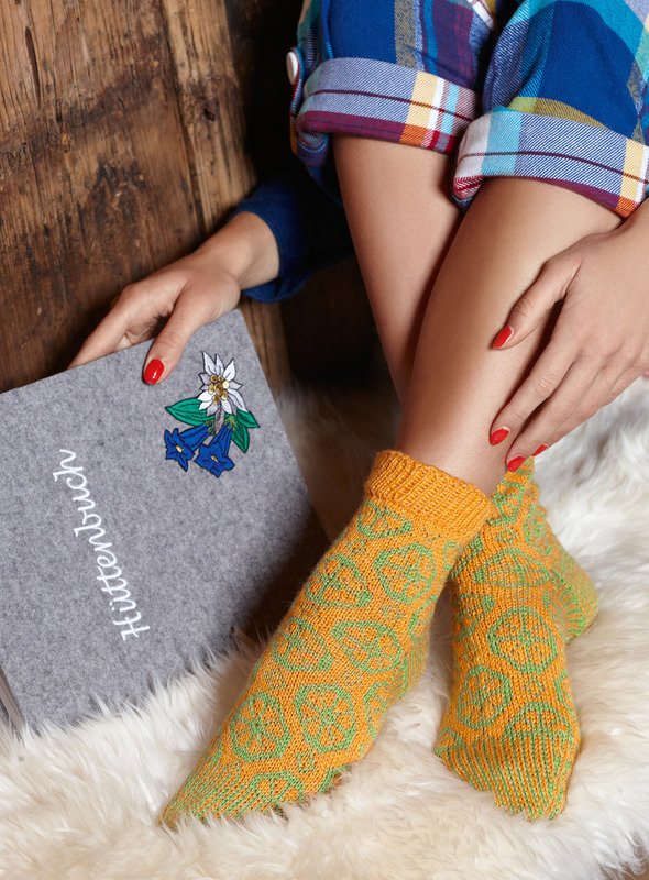 Kalte Füße? Mit selbst gestrickten Socken sicher nicht. Und wenn diese auch noch noch so schick daherkommen wie die Exemplare, für die diese Strickanleitung ist, macht das Tragen besonders Freude. Die Socken werden aus einer Schurwoll-Seiden-Mischung gestrickt. Sie stricken erst das Bündchen und dann glatt rechts. Ein hübsches Jacquardmuster schmückt die Socken. Strickanleitung in Größe 38/39