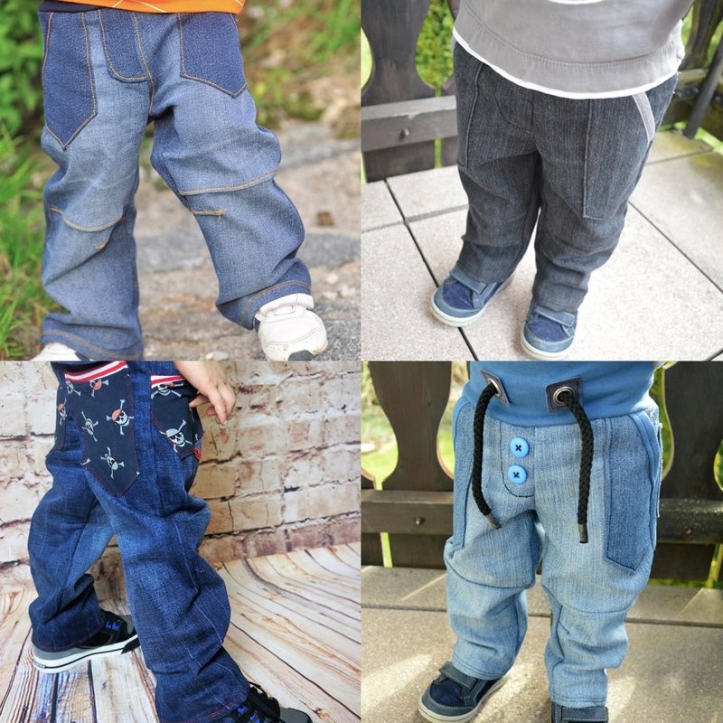 Mit diesem Ebook kannst du deinem Baby oder Kind eine Hose mit vielen Details nähen. Sie kann gut aus festen Stoffen genäht werden, aber auch Sweat ist möglich. Die Hose zeichnet sich durch die besondere Taschenform, sowie eine dreieckige Passe hinten, einer Teilung des Vorderbeines und Knie-Abnähern, aus. Durch diese abzusteppenden Details kannst du mit andersfarbigem Garn tolle Akzente setzen. Das Bauchbündchen wird mit einer zusätzlichen Passe und einem optionalem Kordelzug zum Hingucker. Die Hose bietet sich zum normalen Säumen an- sie kann aber auch mit Bündchenabschlüssen versehen werden. Im Probenähen wurde dieser Schnitt erfolgreich aus festem Jeansstoff, Jeans mit Elastananteil, Breitcord, Babycord, Softshell und Sweat getestet.