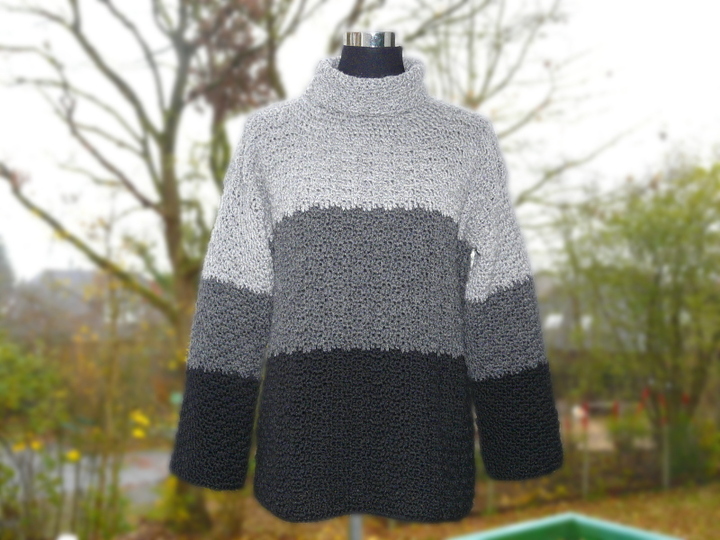 Ich erkläre euch in der Anleitung wie ihr den Pullover an jede Größe anpassen könnt. Die Anleitung beinhaltet die Beschreibung für den Pullover mit und ohne Rollkragen.