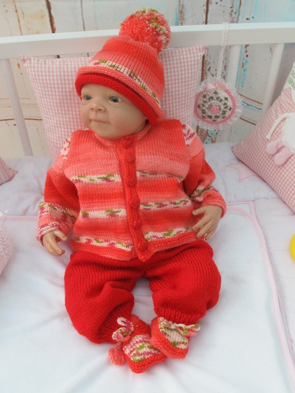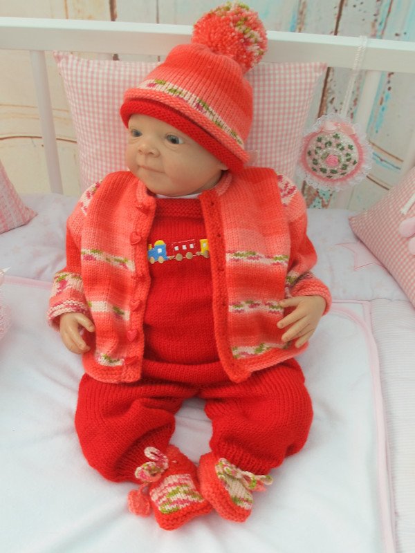 Strickanleitung für ein wunderschönes Set, 4-teilig für Babys & Reborns, Gr. 50/54