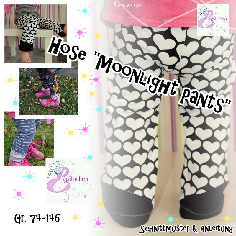 Zeit also, sich auch outfittechnisch anzupassen. Hierfür habe ich die Moonlight Pants kreiert: eine Hose in 2 Passformen: für schmale Kinder sowie für die Verwendung von Jersey ist die Variante „Moonlight Pants“ gedacht, für normale und kräftige Kinder sowie für die Verwendung von weniger dehnbaren Stoffen wie z.B. Sweat nutzt bitte die Variante „Moonlight Pants leger“. Möchtet ihr wiederum nicht-dehnbare Stoffe nutzen, so findet ihr auch in der Anleitung einen Hinweis, wie ihr den Schnitt jeweils ändern müsst, damit die Hose aus jedem Bekleidungsstoff nähbar ist.