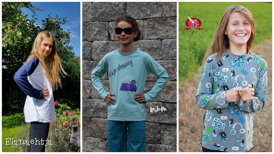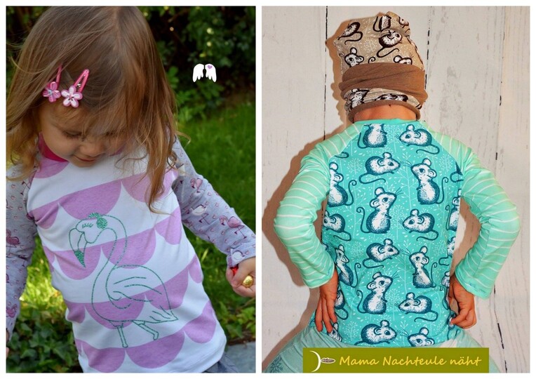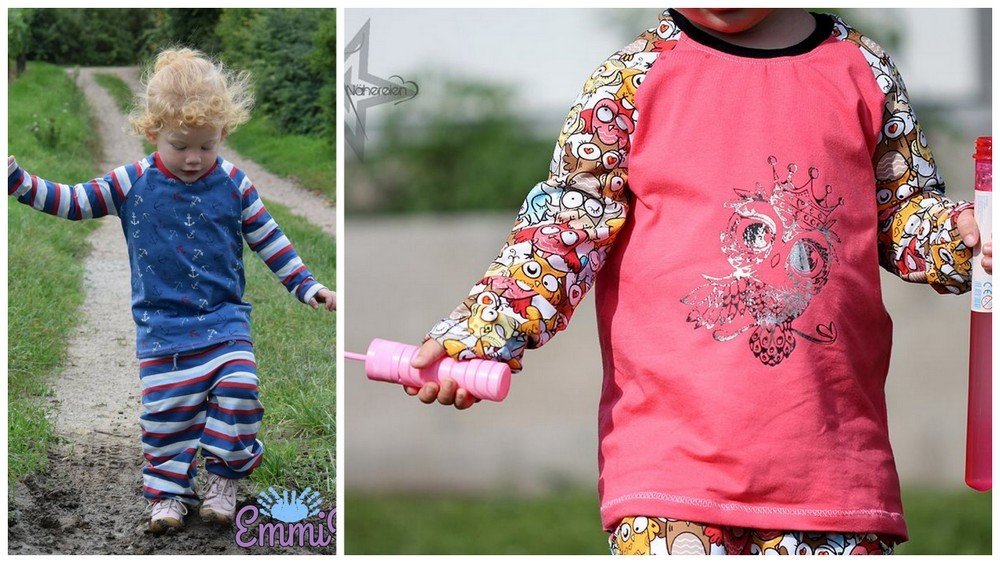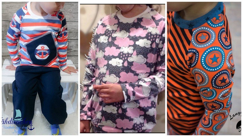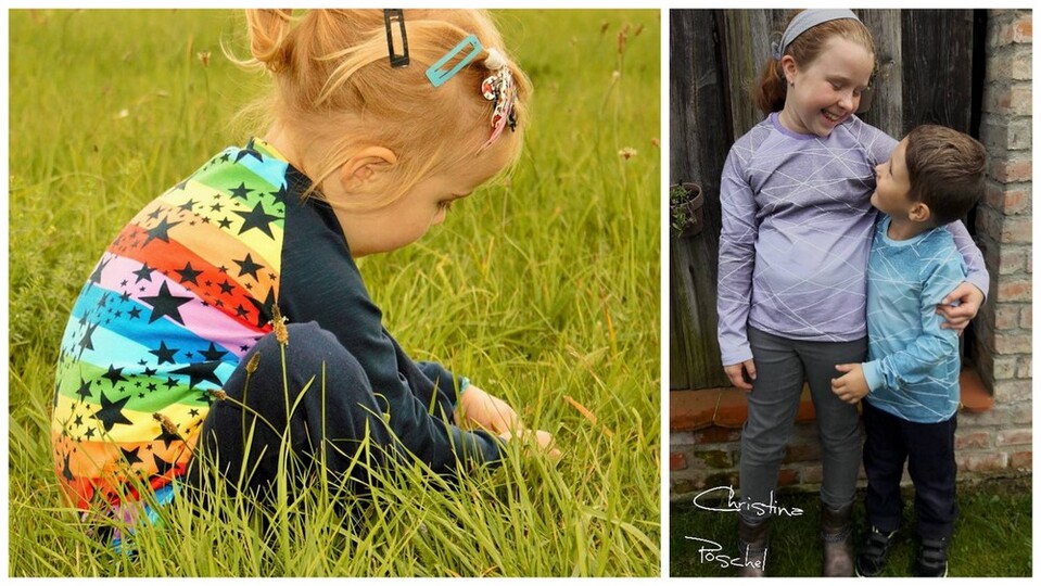 Basic-Schnitte braucht man immer – sei es, um ein anderes besonderes Nähstück hervorzuheben oder zu ergänzen, aber auch um einen schnellen Näherfolg zu haben. Das Basic-Shirt Kim ist ein Raglan-Langarmshirt / Longsleeve in Gr. 86/92 – 158/164 – ideal auch für Nähanfänger – was in weniger als 10 Minuten genäht ist. Von der Passform her weder lässig noch hauteng, es passt auch mit einem kleinen Kullerbäuchlein und super unter Latzhosen, Jumper, …