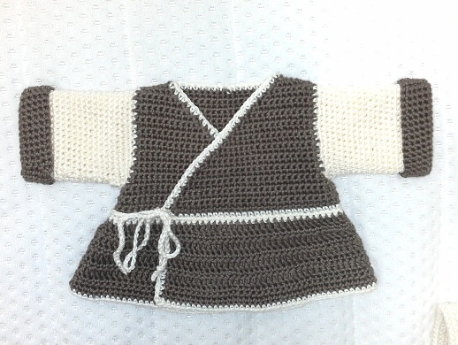 Das Wickeltop Variante 2 (braun, mit Ärmel) wiegt insgesamt 85 Gramm
