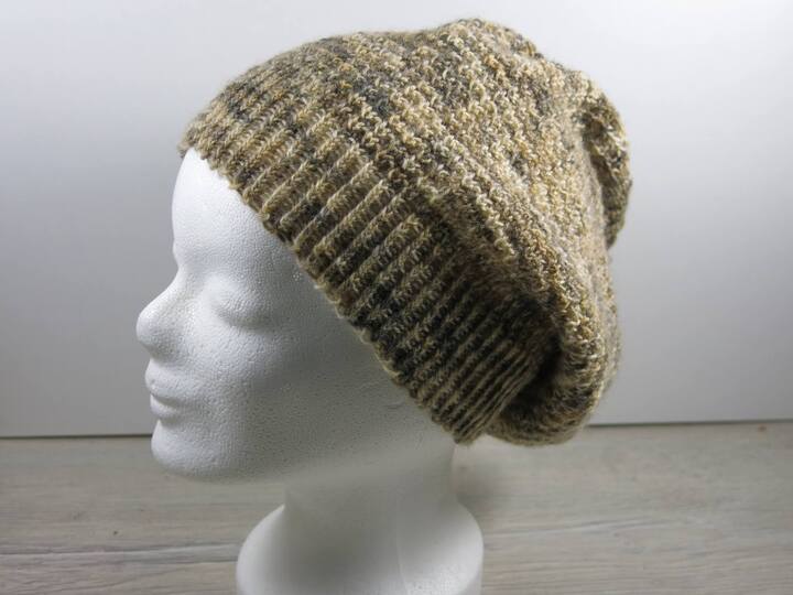Gestrickt wird in Runden mit einem einfachen Muster aus linken und rechten Maschen.