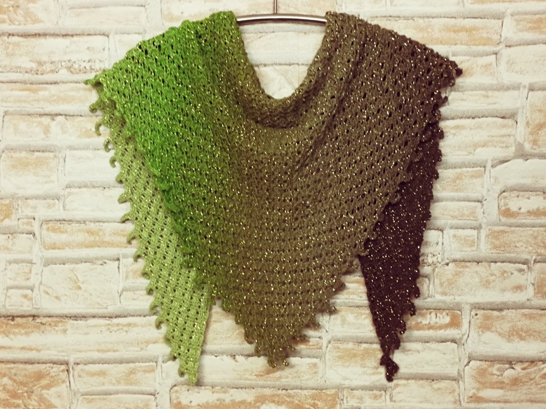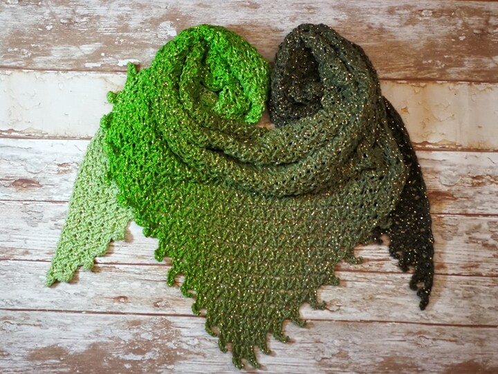 einen verzwirnten Scheepjes Whirl, 215g=1000m (100g=455m) ich habe die Farbe Pistachi Oh so nice gewählt und Lurex Metallgarn in der Farbe Gold als Beilaufgarn genommen, somit wird das Tuch zum absoluten Highlight. Natürlich gibt es die Lurex Metallgarne in ganz vielen Farben, somit kannst du dein glamouröses Tuch nach deinem Persönlichen Geschmack gestalten.