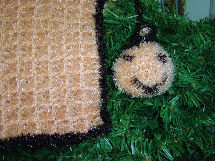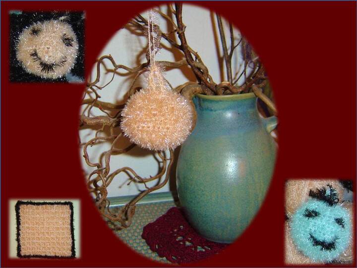 Das aufgestickte Gesichtchen verleiht der Spülschwamm-Kugel einen witzigen Touch für Geschenke. Wird die Kugel (nicht gefüllt) nach außen gedrückt, ist es ein lächelnder Spülschwamm, nach innen gedrückt, ist es ein „Halloween-Gesicht“. Wenn ohne „Gesicht“ belassen, macht die Kugel auch als Weihnachtskugel was her.