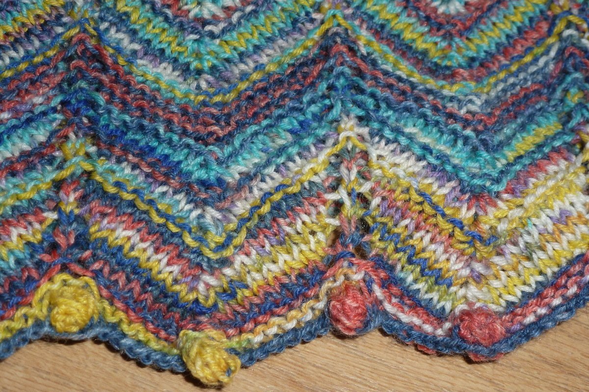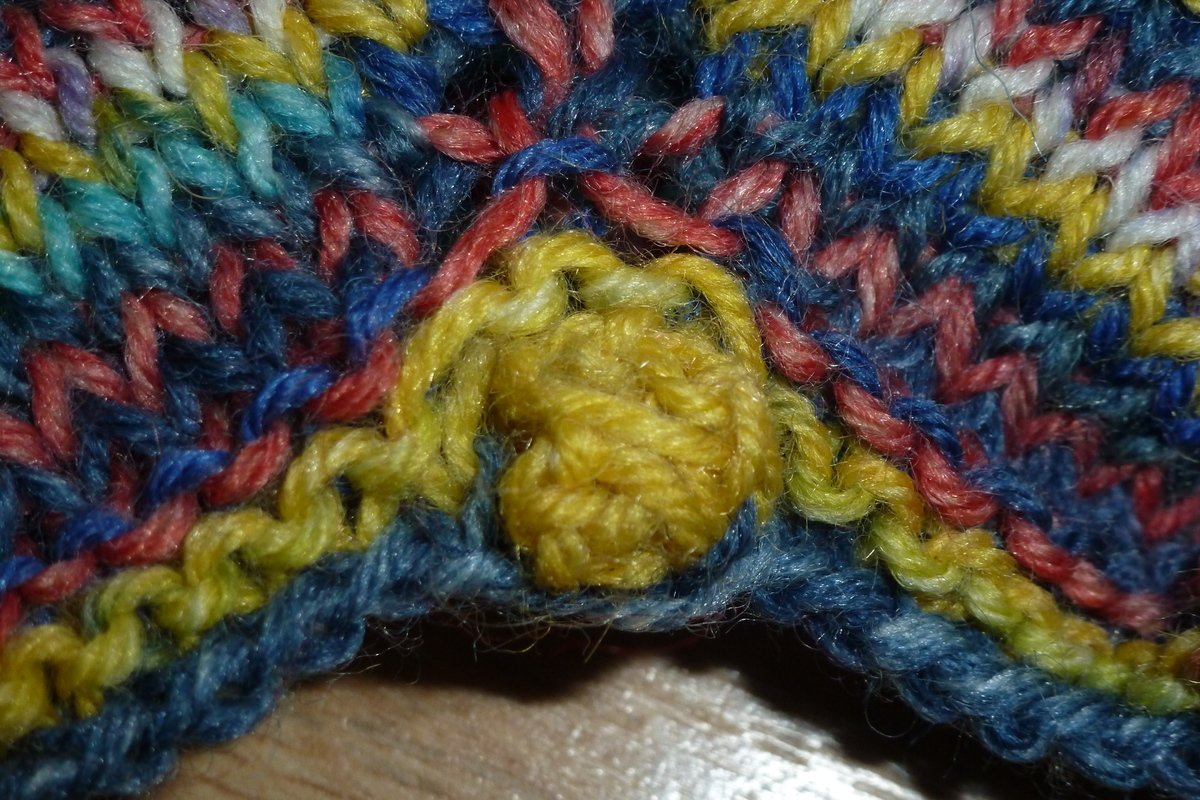ist am Anfang mit einer Noppenborte verziert, die Anleitung dazu