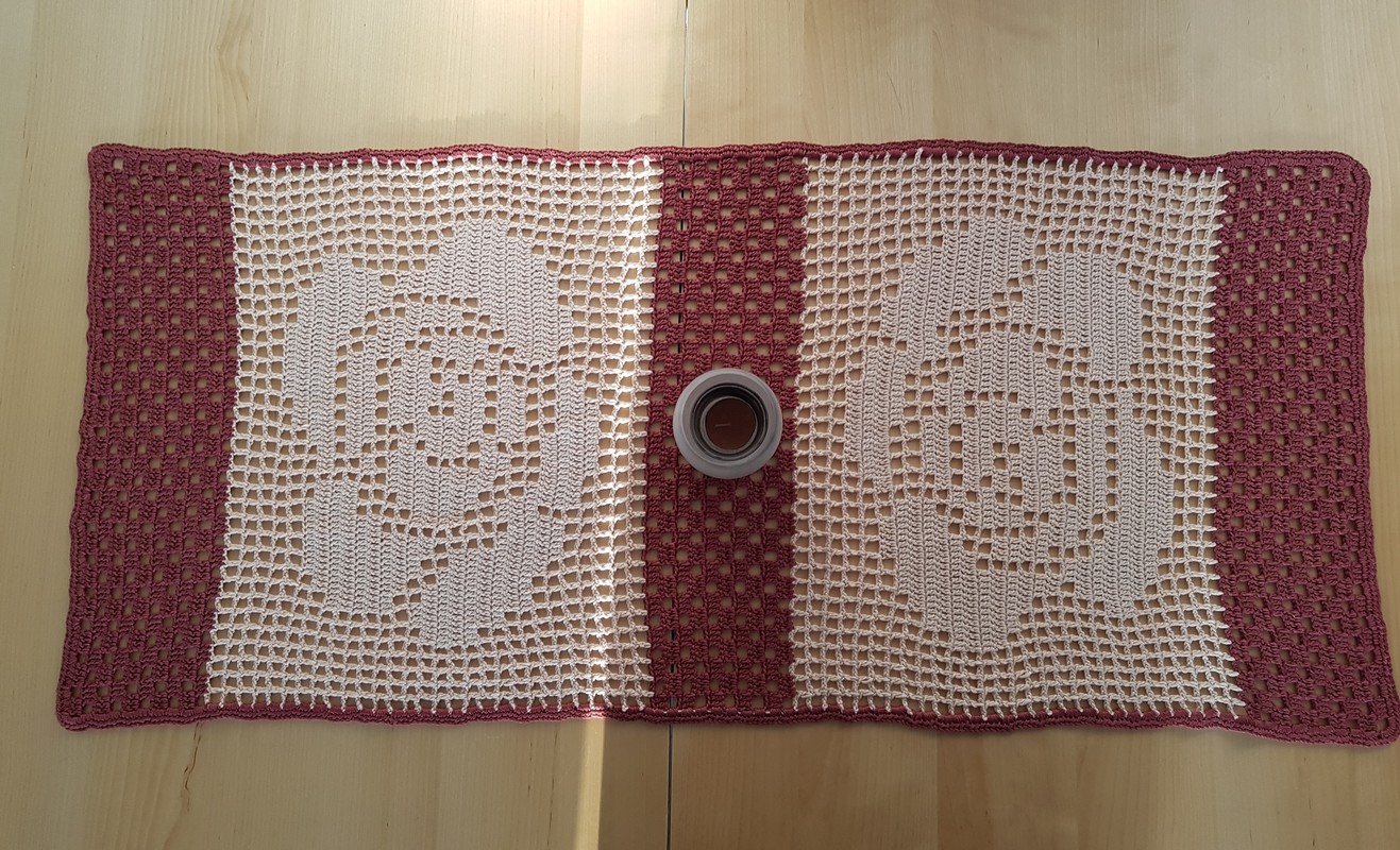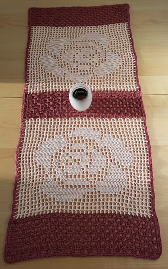 Häkelanleitung für einen schönen Tischläufer mit einem Rosenmuster, der in jeden Haushalt passt. :)