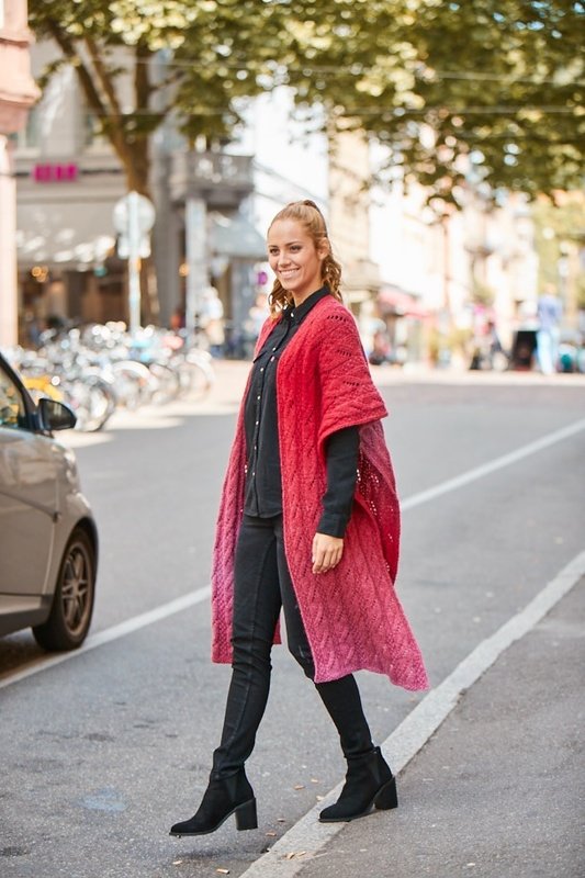 Tipp: Um bei Farbverlaufsgarnen harmonische Farbübergänge zu erhalten, bedarf es etwas Kreativität und Spiel mit den einzelnen Knäueln. Werden dabei nicht nur ein Teil wie bei einem Schal oder einem Dreieckstuch, sondern mehrere Teile, z.B. für einen Pulli oder eine Jacke gestrickt, wird manchmal ein Knäuel mehr benötigt als dies gewichtsbedingt nötig wäre. Dadurch ist von einigen Knäueln noch Garn übrig. Mit diesen können Sie dann einen schmalen oder kurzen Schal arbeiten oder ein kleines Accessoire, wie z.B. ein schönes Windlicht umhüllen.