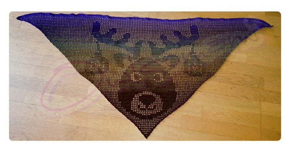 Das Tuch wurde mit ca. 800 Metern 3- fach gefachtes Farbverlaufsgarn mit einer Nadelstärke 3 gehäkelt. Das Tuch ist ca. 200 cm lang und ca. 78 cm breit.