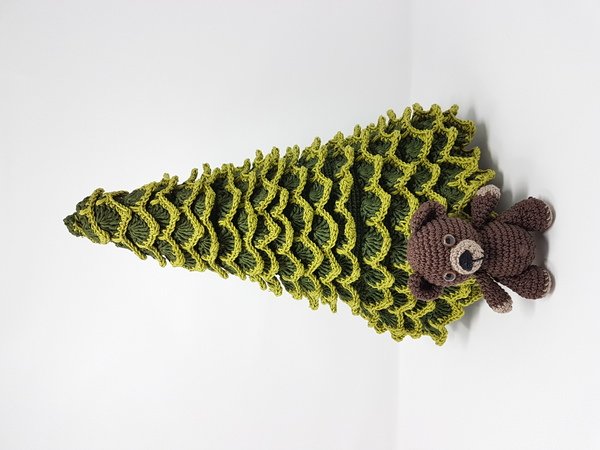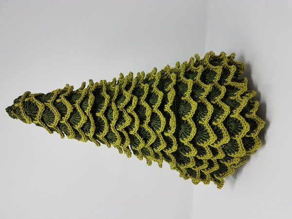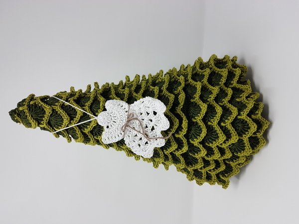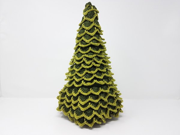Für den Weihnachtsbaum brauchst du etwa 350 Gramm Garn. Er wird etwa 30 cm hoch.