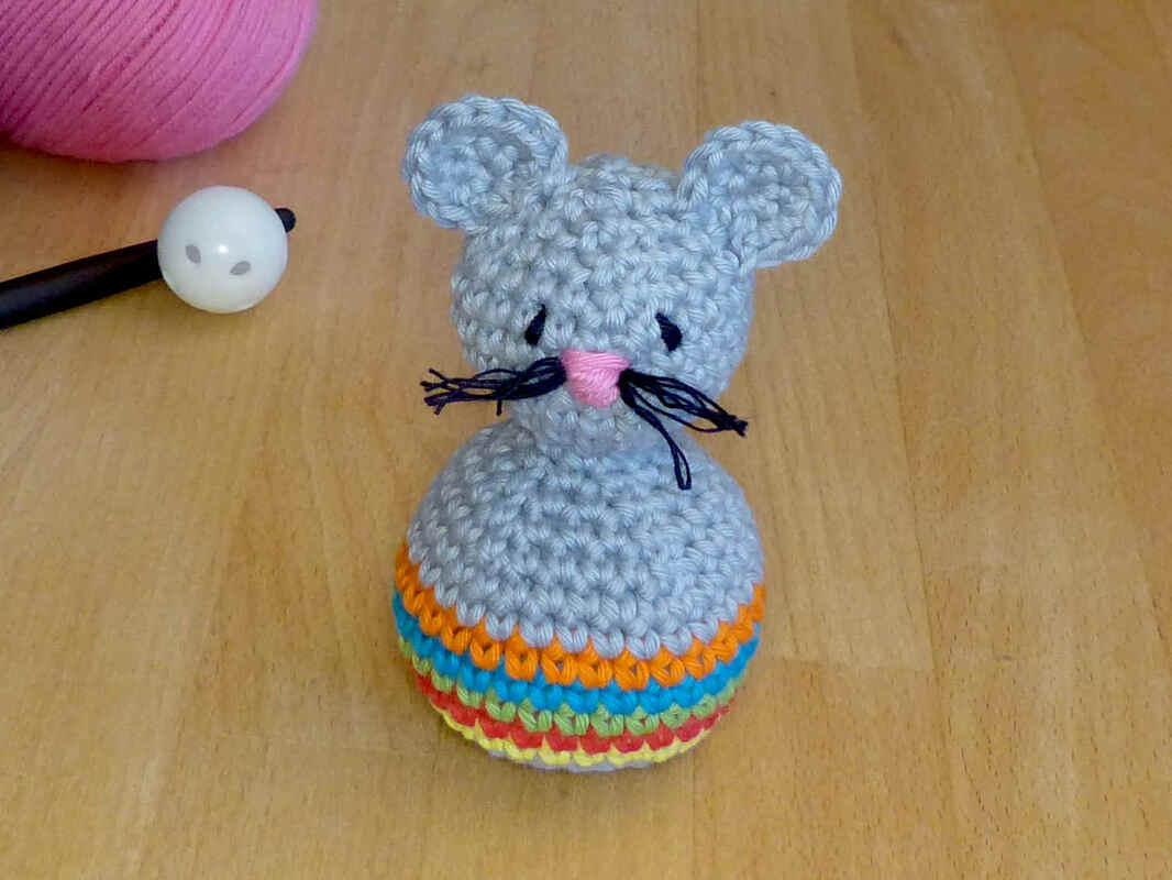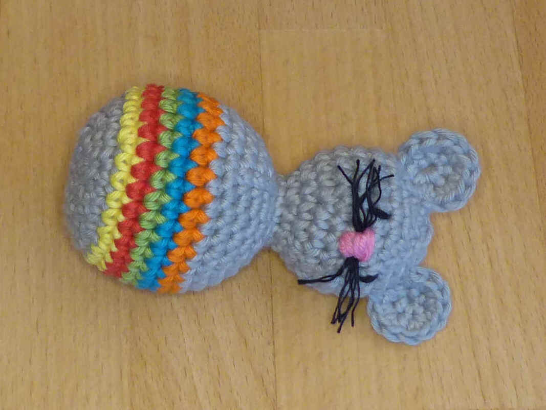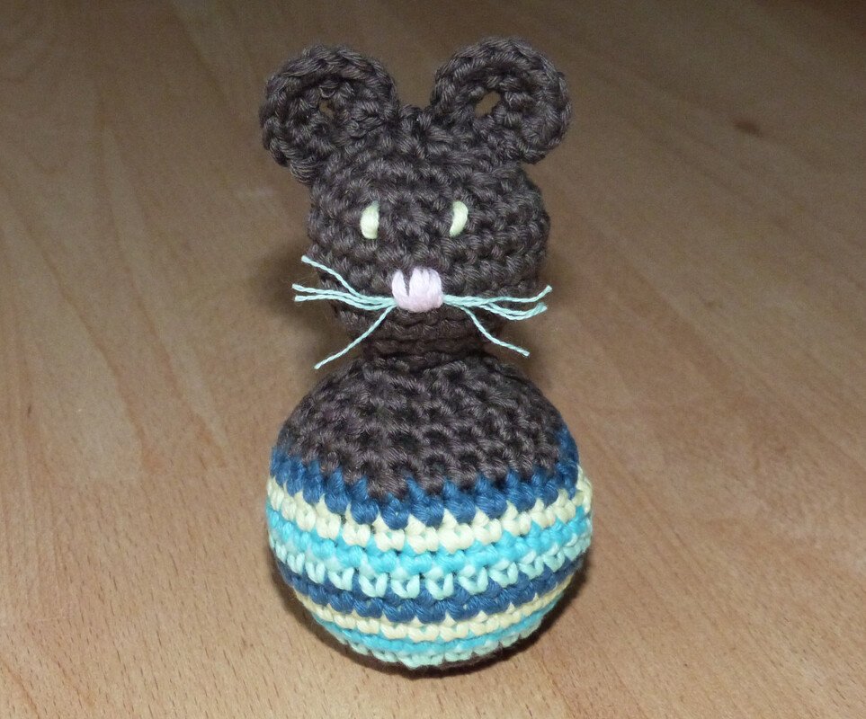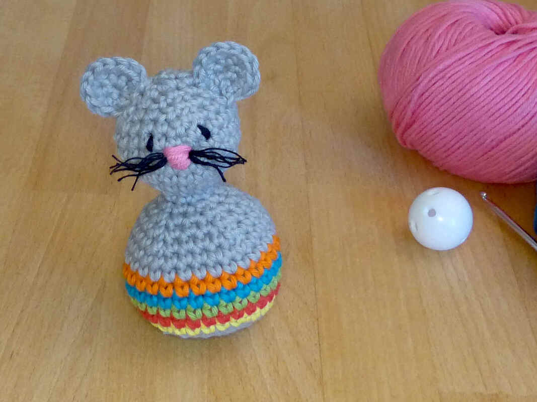 Bei Verwendung von Baumwollgarn mit einer Lauflänge von ca. 90m/50g und Nadelstärke 3 wird die Maus etwa 12 cm groß. Das Spielzeug ist geeignet für Kleinkinder ab etwa 1 Jahr.
