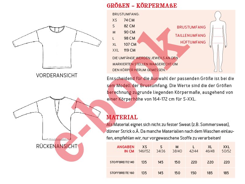 Umfang: Nähanleitung - 11 Seiten , Schnittmuster - 16 Seiten (die zusammengeklebt werden müssen)