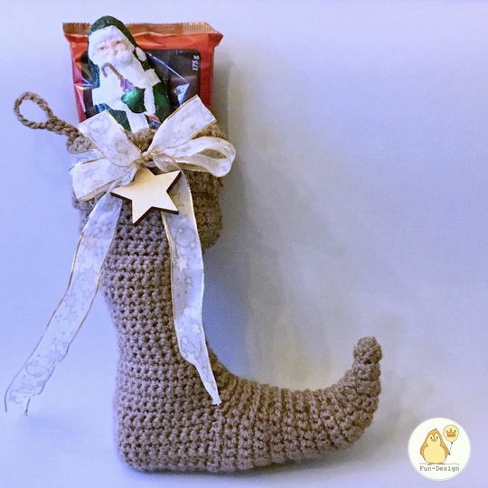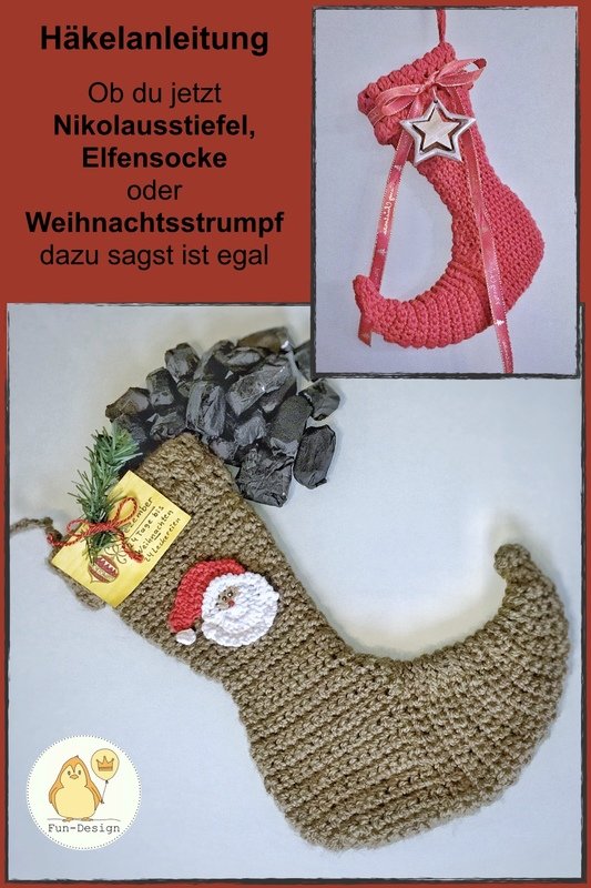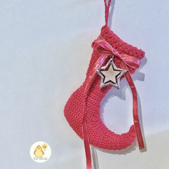 Gehäkelt mit Nadelstärke 3,5 wird der Strumpf ca. 20 cm groß
