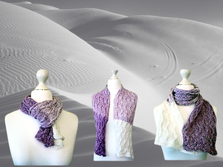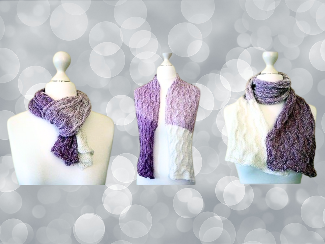 Der geknöpfte Zopfschal hat eine Länge von ca. 70 cm und eine Breite von ca. 25 cm, während die längere Variante ohne Knöpfe ca. 22 cm breit und ca. 132 cm lang ist.