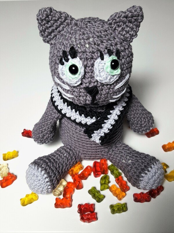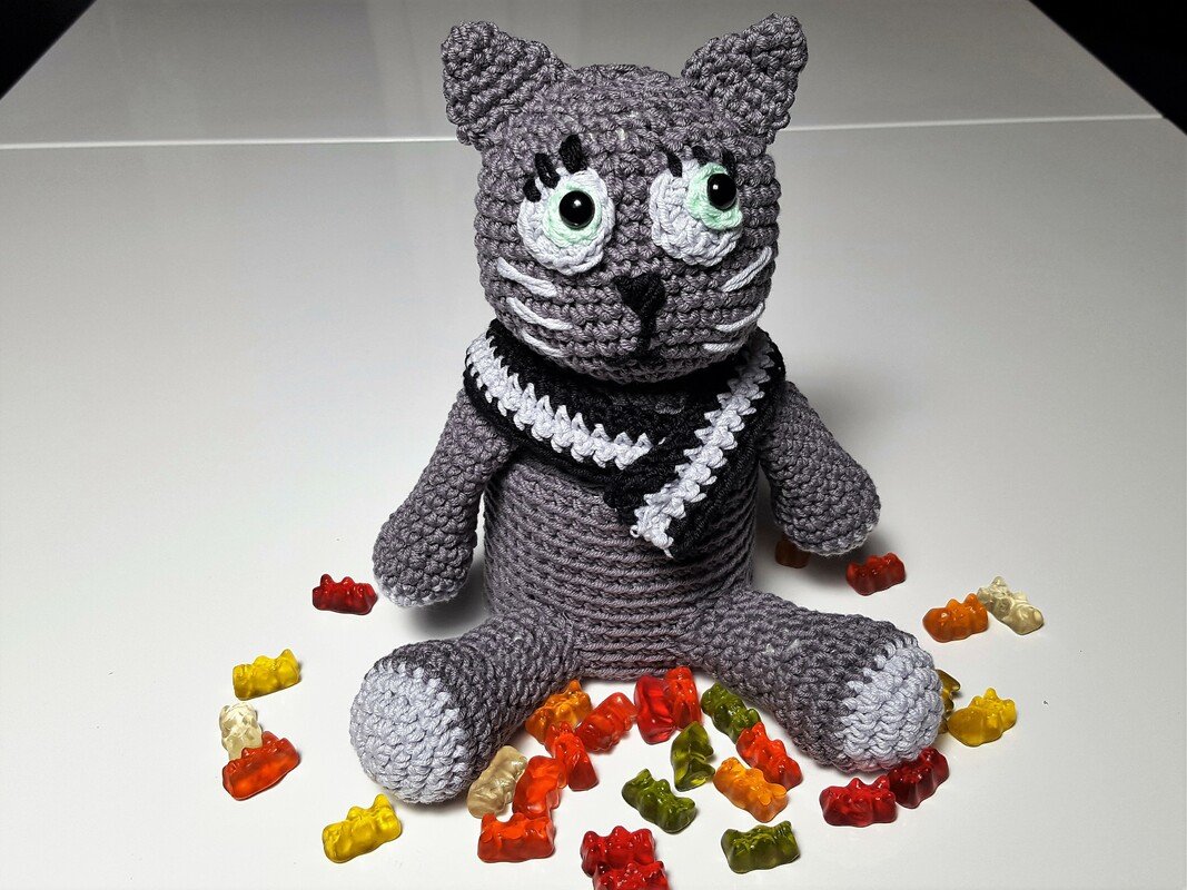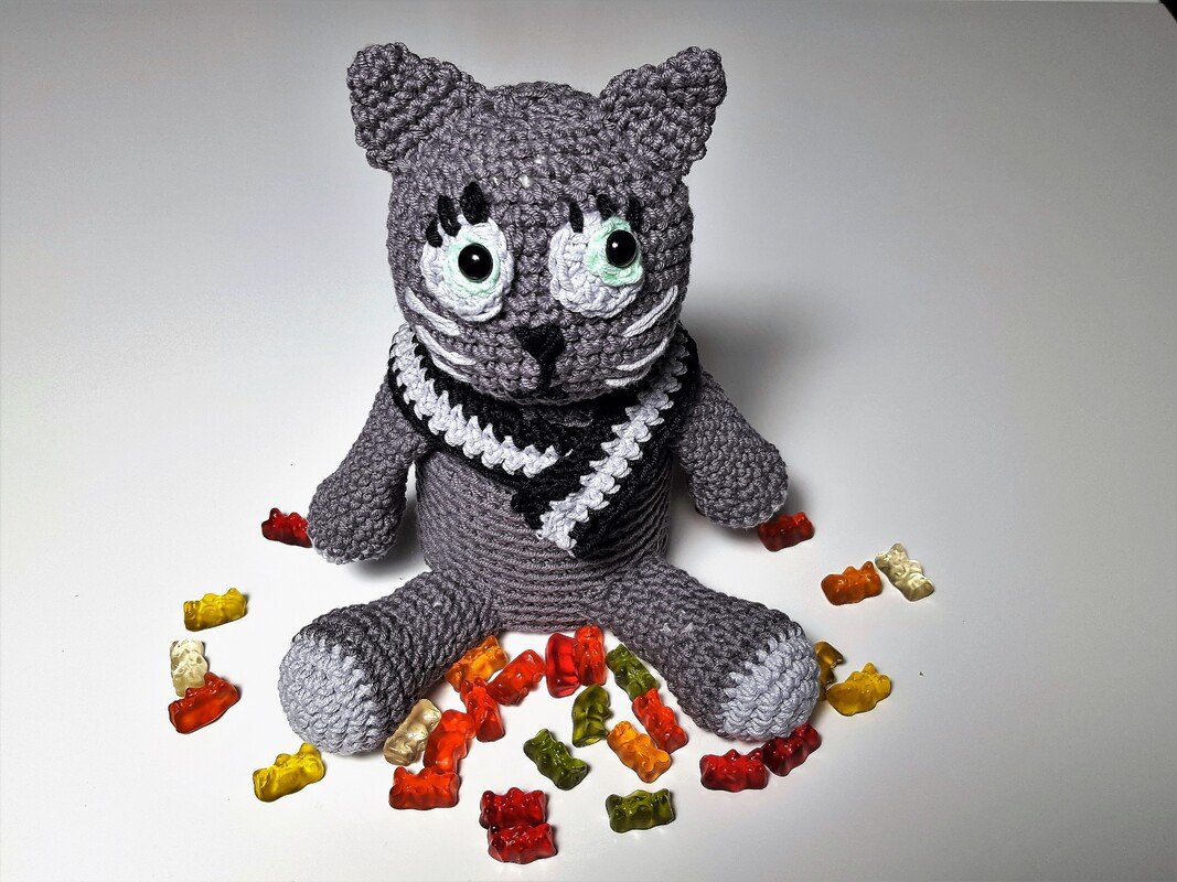 Häkelanleitung launische Katze, als Dose für Kleinigkeiten.
