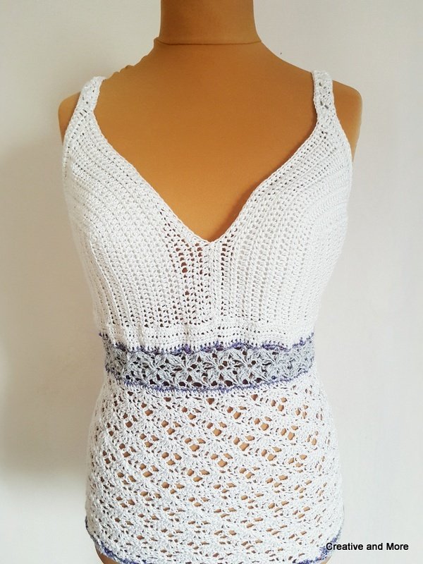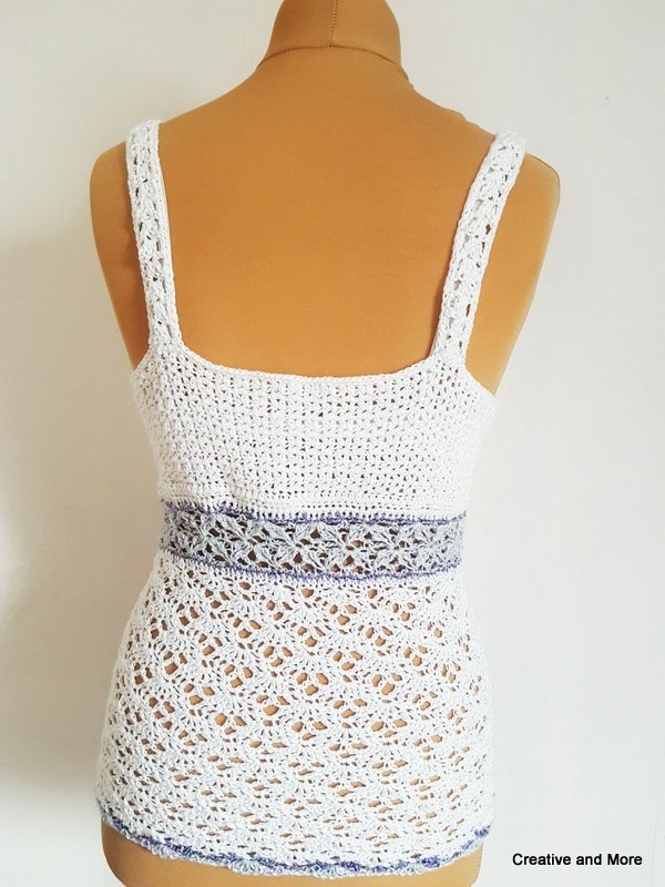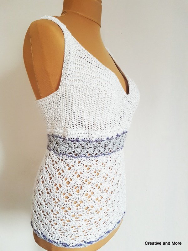 Dieses chice Top ist perfekt für jeden Anlass, da die Farben schlicht und zeitlos sind. Man kann es gut im Sommer, wie auch zu eleganten Anlässen tragen. Man kann es in jeder Größe nachhäkeln. Ein Rechenbeispiel gibt an, wie du auf deine gewünschte Größe kommst :-)