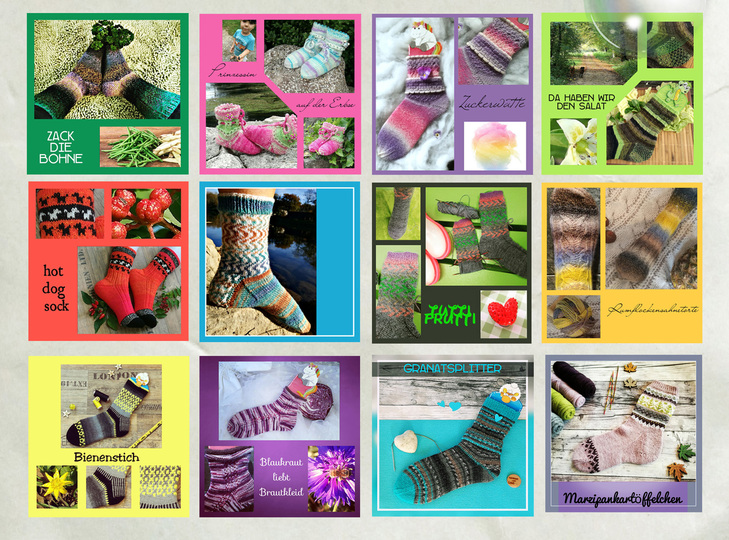 Die Designs sind alle unterschiedlich und abwechslungsreich gehalten; mal aus einer Wolle, mal mehrfarbig gestrickt. Von sehr einfach bis etwas anspruchsvoller ist für jeden etwas dabei. Und mit viel Spaß habt ihr am Ende des Jahres 12 unterschiedliche Paar Socken im Schrank.