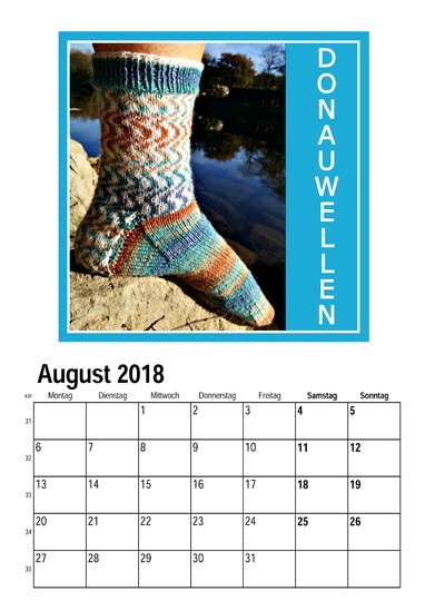 Es sind pro Monat jeweils 2 Seiten: eine mit einem tollen Sockenfoto und Kalendarium und die zweite mit der Anleitung für den jeweiligen Socken.
