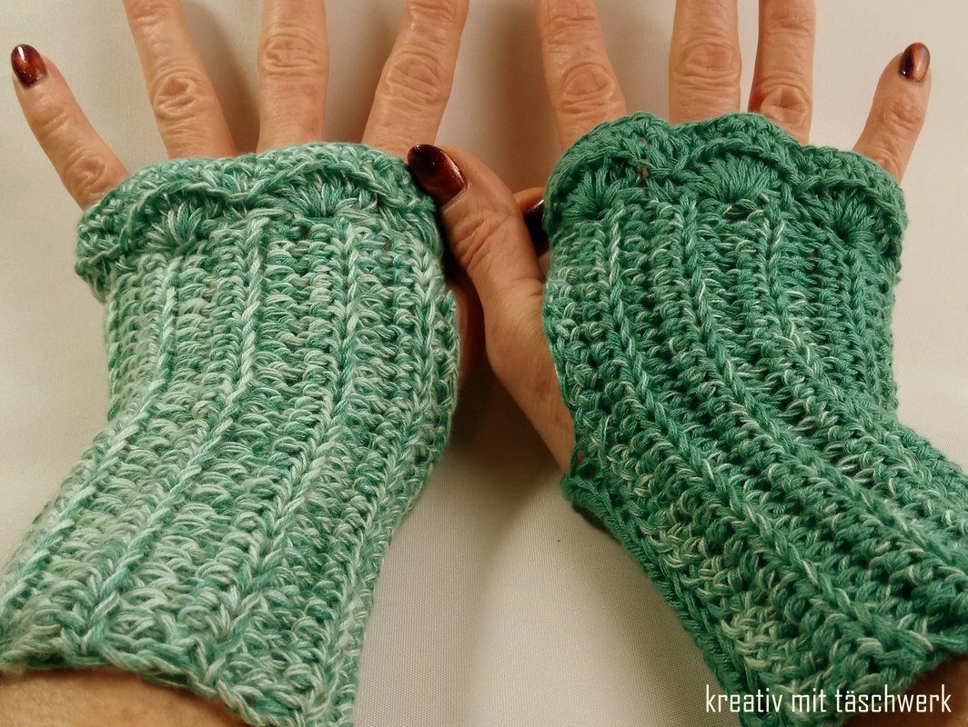 Schnell gemacht sind diese tollen Armstulpen, passend zu der Beanie "Meeresbrise"! Die Größe ist individuell anpassbar. Ich habe meine aus Farbverlaufsgarn (Bobbel) gehäkelt. Es ist aber kein Problem anderes Garn zu verwenden. Auch Reste lassen sich gut verarbeiten!