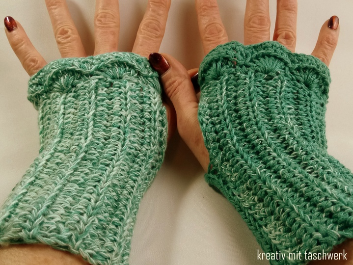 Die Stulpen werden mit halben Stäbchen, Stäbchen und festen Maschen gehäkelt.