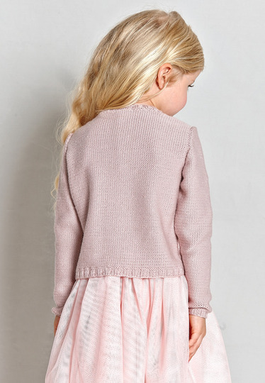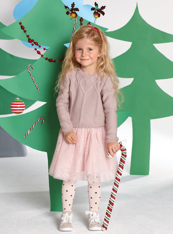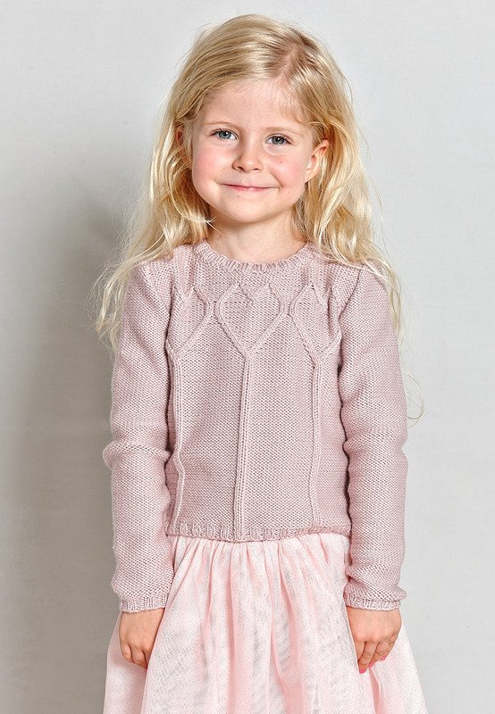 Heute wird gefeiert, darum hast du dich auch so chic herausgeputzt. Du trägst einen puderrosafarbenen Pulli mit herzförmigem Zopf - der sieht auch zum Tüllrock hübsch aus.