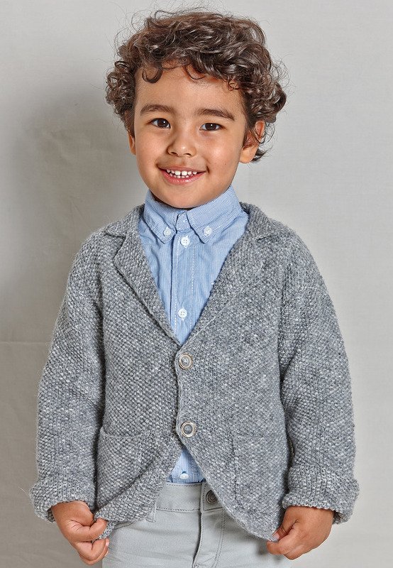Große Feste brauchen elegante Anziehsachen. Mit einer Strickjacke im Blazerstil und locker geschlungenem Schal sind kleine Gentlemen dem Anlass entsprechend angezogen.