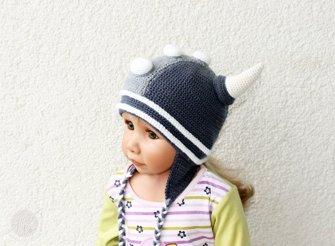 Diese PDF-Häkelanleitung besteht aus bebilderter Anleitung zum Häkeln einer Mütze in der Form eines Wikingerhelms mit den Dekoteilen. Die Mütze kann sowohl für Kinder als auch für Erwachsene gehäkelt werden. Die Größe wird während des Häkelns des Bodens der Mütze angepasst (wird in der Anleitung erklärt).