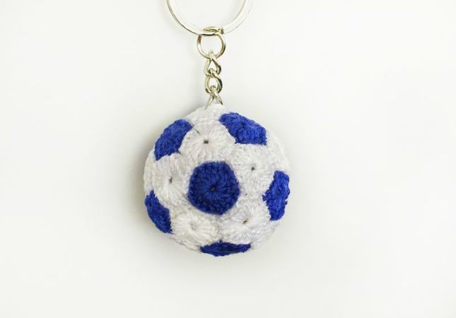 7.Häkelanleitung Taschenbaumler, Schlüsselanhänger "Fußball"