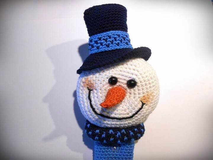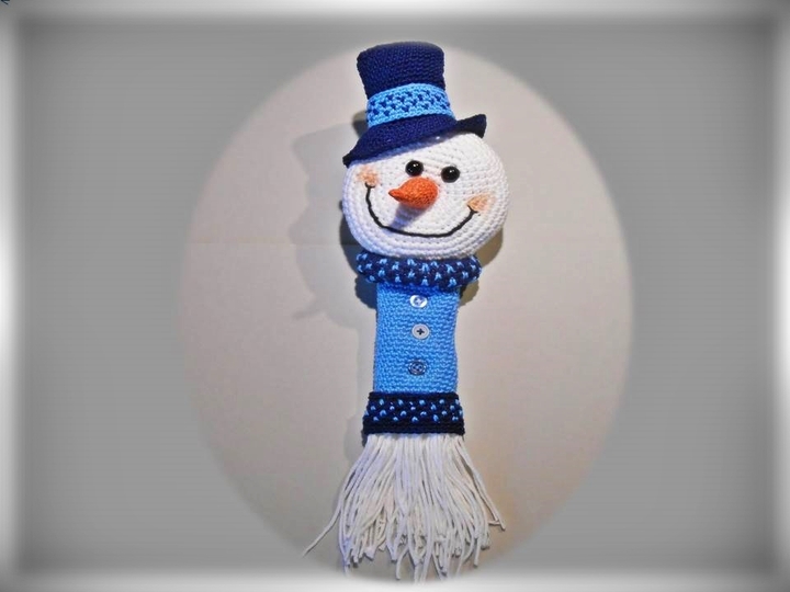 Sein Lächeln verbreitet gute Laune und aus Wollresten gehäkelt sieht er auch toll aus.