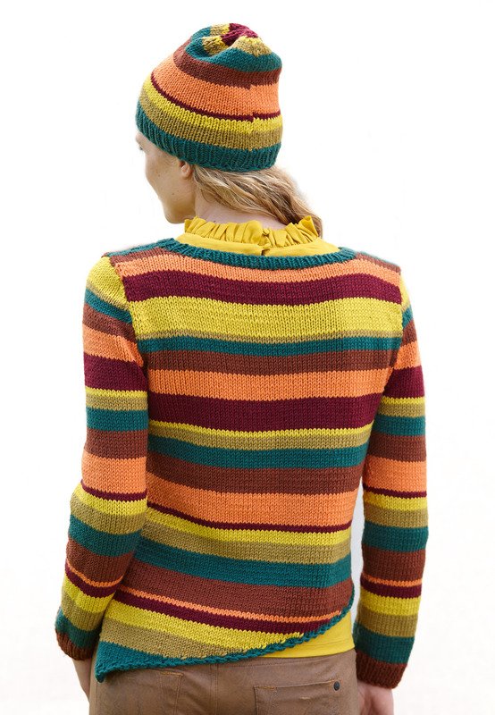Ganz schön schräg und dann noch in unserem Lieblingsmuster: Streifen. Als stylische Ergänzung stricken wir noch die passende Mütze dazu. Schon ist der Herbstlook perfekt!