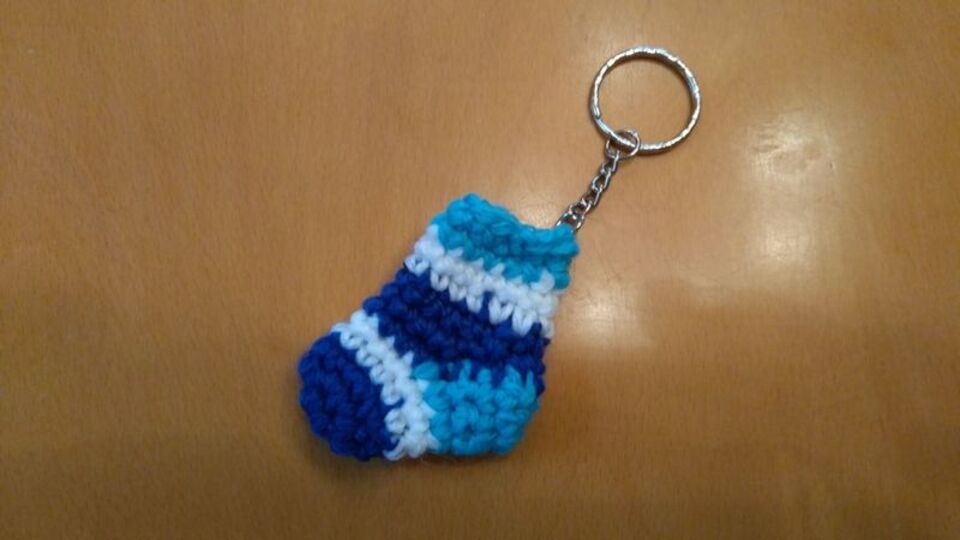 Dieses süße Söckchen kann man an den Schlüsselbund hängen.