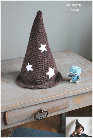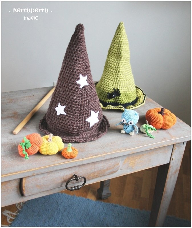 Handgemachte Hexenmütze / Zaubererhut oder Zwergenmütze von Kertupertu. Die Anleitung ist für jeden Kopfumfang geeignet.