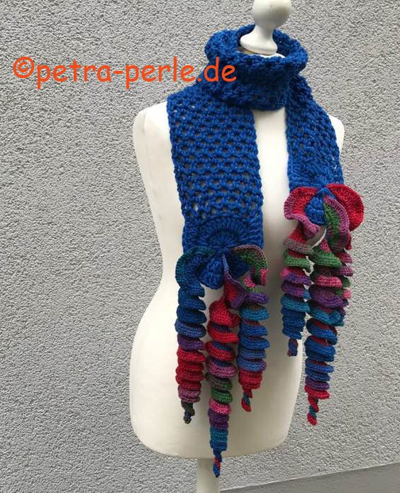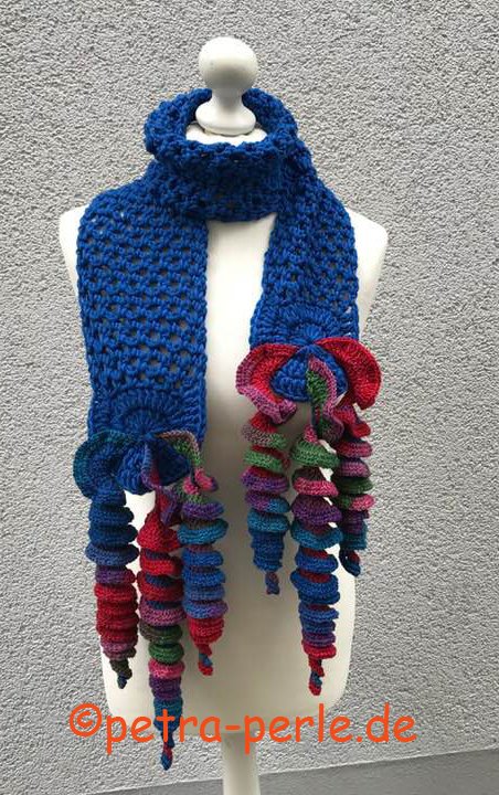 Der flotte Schal „STREAMER“ hat einfach einen herrlichen Abschluss...die 6 Luftschlangen wippen fröhlich bei jedem Schritt mit und den Schal zu erarbeiten macht einfach Spaß!