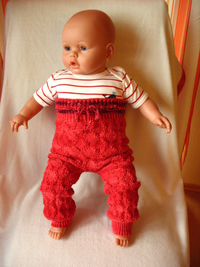 Das Strickmuster - nur rechte und linke Maschen - ist mit der Mustertabelle einfach zu stricken, auch für Anfänger mit Grundkenntnissen. Die Länge der Beine kann so angepasst werden, dass die Hose beim Baby auch mit einem Jahr und mehr noch passt. Ich habe einen Zwickel mit eingestrickt, da sie dadurch einen besseren Sitz hat.