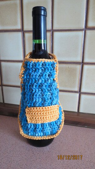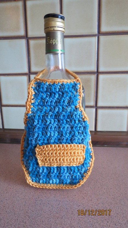 Pack doch die Flasche Sekt oder Likör oder Schnaps in diese Schürze, und schon ist dein Geschenk aufgewertet.