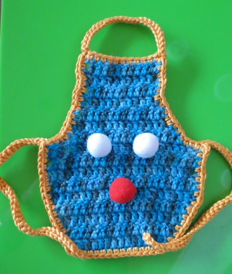 Die Tasche musst du nicht unbedingt anbringen, wie du die Schürze dekorierst, bleibt dir überlassen. Zwei Beispiele habe ich mal beigefügt.