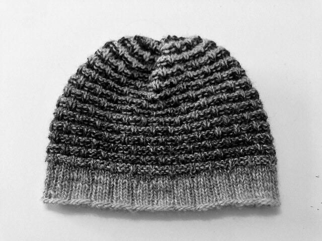 Diese Mütze ist in Größe und Farbe leicht an die eigenen Bedürfnisse anzupassen. Ich habe hier zwei verschiedene Garne in hellen und dunklen Grautönen verwendet. Das dunklere Garn für die Zwischenreihen benutzt, kommt das Flechtmuster mit dem helleren Garn noch besser zur Geltung.