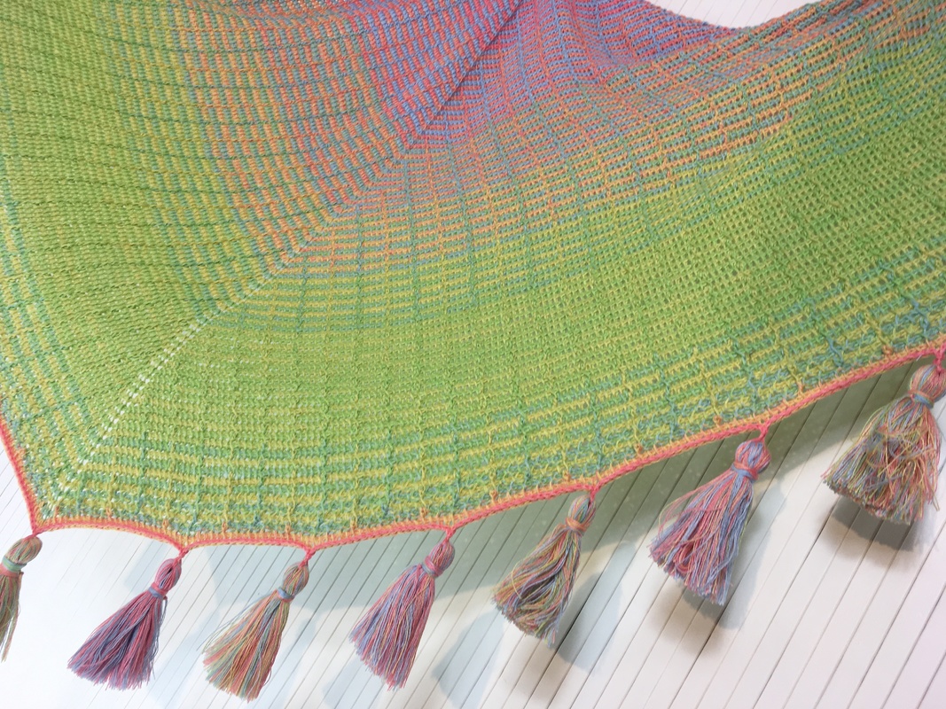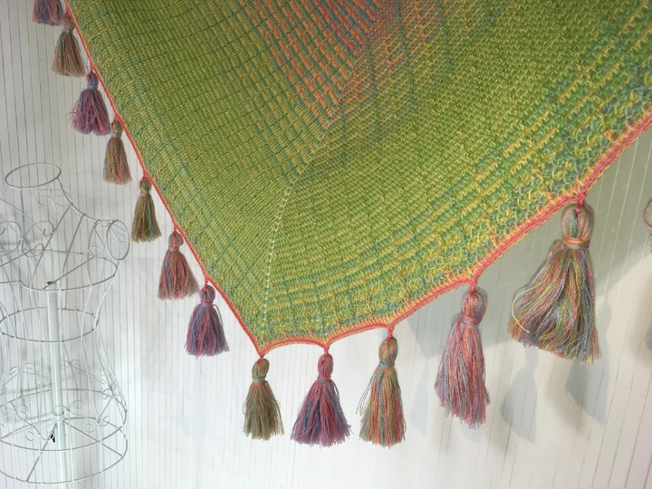 Dort sind insgesamt 9 Maschen gestrâkelt