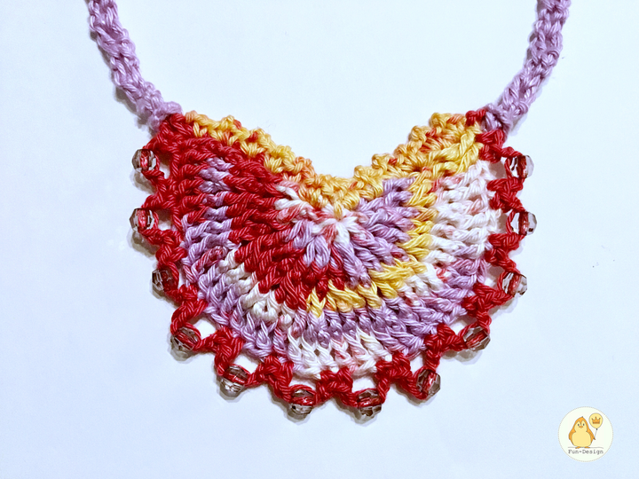 Gehäkelt mit Nadelstärke 3 wird ein Anhänger ca. 9 cm groß