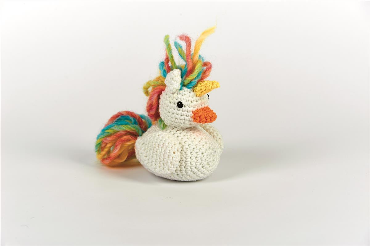 Die bekannte gelbe Quietschente mal anders: häkel sie dir aus 100% Baumwolle als Einhorn.