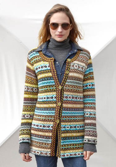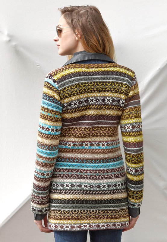 Diese Strickanleitung ist etwas für Könner, die Strick-Herausforderungen lieben! Belohnt werden sie mit einer tollen Strickjacke, schmal und lang geschnitten und in leichter A-Linie. Das Jacquardmuster setzt sich aus schmalen, unterschiedlich gemusterten Querstreifen zusammen, die sich regelmäßig wiederholen. Durch Verwendung zweier Farbverlaufsgarne – von Kiwi bis Beige und Türkis bis Braun – und Kombination mal mit hellem, mal mit dunklem Uni-Ton ergeben sich dabei immer wieder neue Farbeffekte. Die Anleitung ist zum Stricken in den Größen 34/36, 38/40, 42/44 und 46/48.