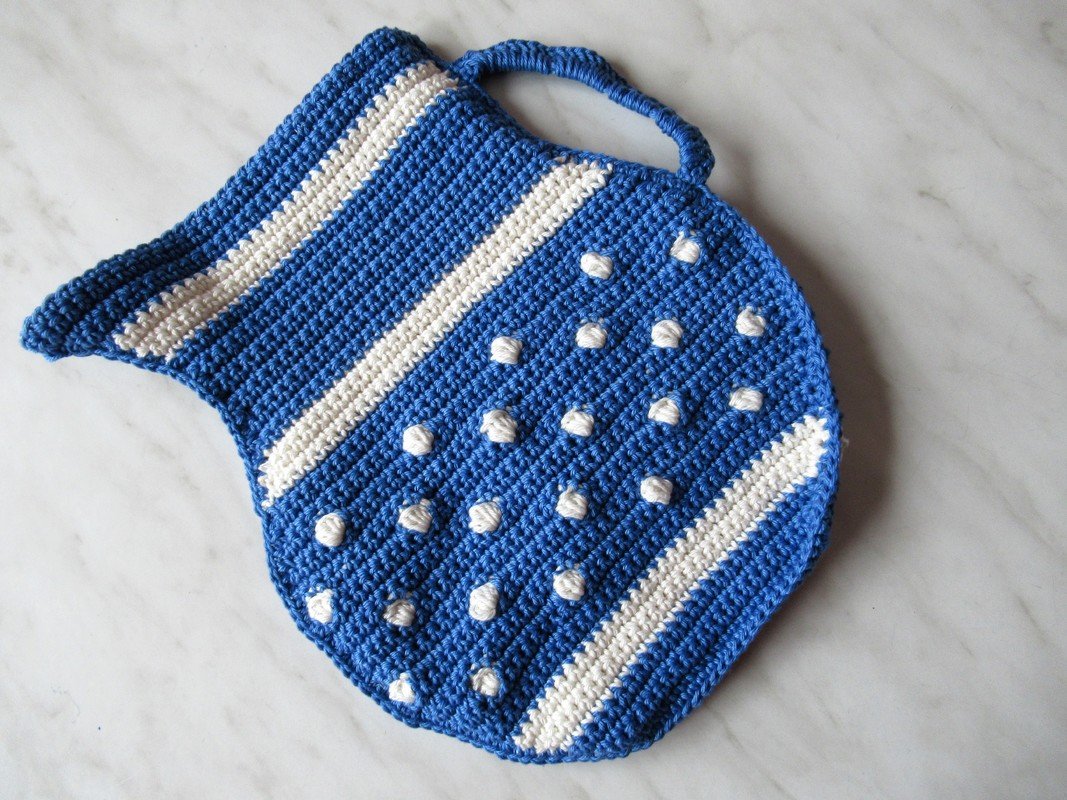 Ein praktischer, großer Topflappen zum Hineinschlüpfen ist diese nostalgische blaue Milchkanne mit den weißen Punkten. Sie erinnert an Omas Geschirr und gemütliche Kaffeestunden in der Küche.