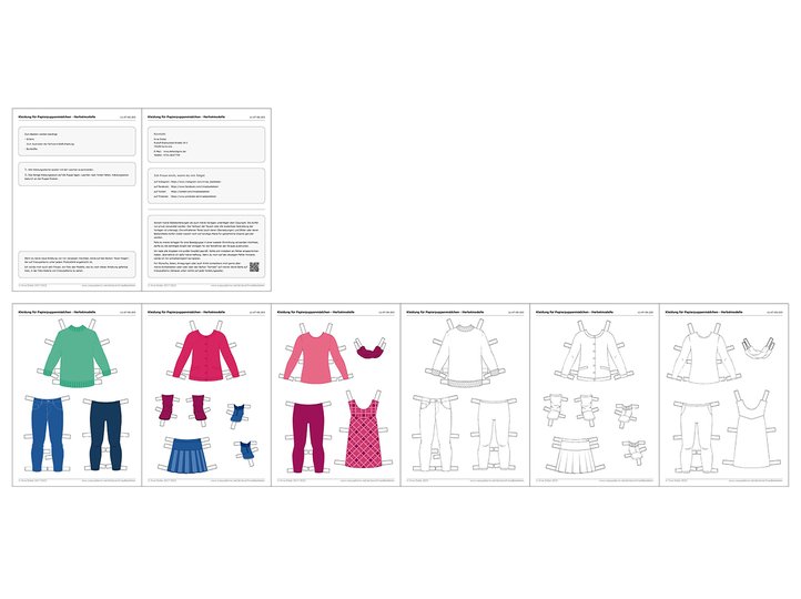 Der Download enthält zwei PDF-Dateien: die Anleitung und die Druckvorlage für die Kleidungstücke in fertig kolorierter Version sowie in Konturenversion.