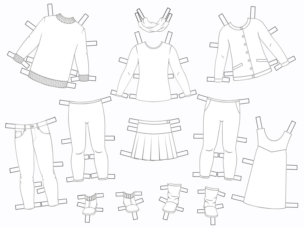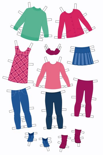 Für einen kleinen Spaziergang im Park an einem kühlen Herbsttag sollte sich auch ein Papierpuppenmädchen warm anziehen. Mit den angebotenen Kleidungsstücken kann es einige passende Outfits zusammenstellen.