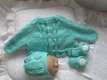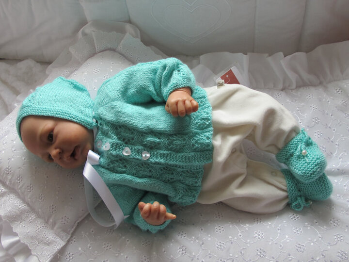 Strickanleitung für ein wunderschöne Babygarnitur 3-teilig für Babys & Reborns, Gr. 50/56 Das Set ist aus Babywolle gestrickt. Die Anleitung ist sehr genau beschrieben und mit vielen Fotos. Die Jacke wird von oben gestrickt an einem Stück