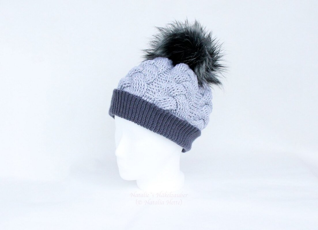 Die PDF-Häkelanleitung besteht aus bebilderter Anleitung zum Häkeln einer Mütze mit dem ausgeprägten Zopfmuster und Bündchen im Stricklook. Die Mütze kann sportlich oder herabhängend gehäkelt werden. Für die herabhängende Mütze wird die Mitte bis zur Gesamtlänge von 25 cm gehäkelt, für eine normale Mütze (sportliche Mütze) bis zur Gesamtlänge von 16 cm.