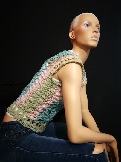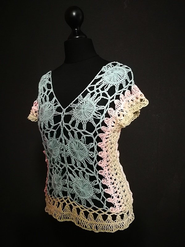 Das Shirt "Julia" wird komplett mit einer Netzgabel gehäkelt. Die Gabelhäkelei ist eine alte Technik die in diesem jahr wieder etwas in Mode gekommen ist. Die Technik ist ganz einfach und Dank meiner reichlich bebilderten Anleitung auch für Anfänger geeignet.