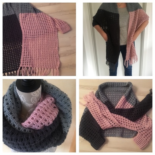 Dieses Tuch ist vielseitig einsetzbar / verwendbar, als Schultertuch, Stola, Poncho, Schal oder Loop