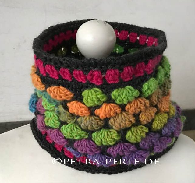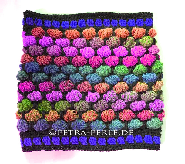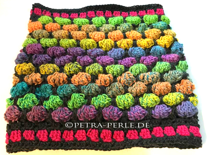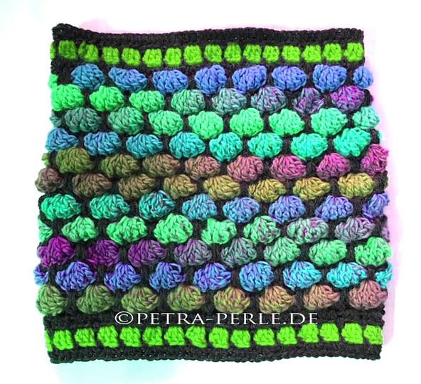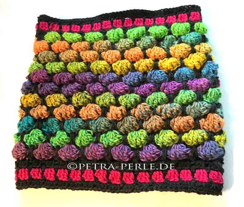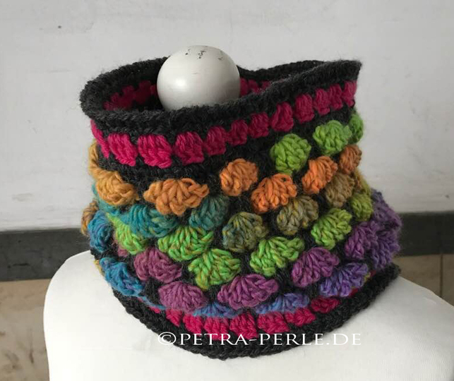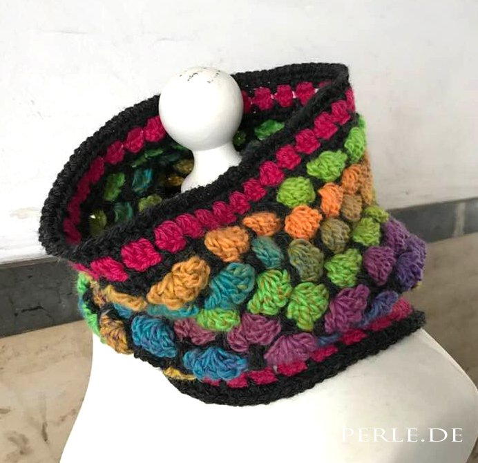 Der LOOP „Pulsar“ mit der bunten Verlaufswolle ist ein echter Blickfang und sehr bequem zu tragen..nix verrutscht mehr!